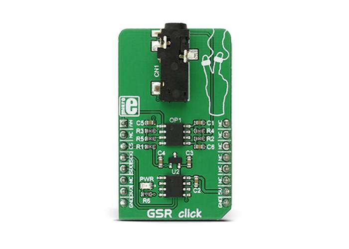 GSR Click can be used to measure the electrodermal activity (EDA) of the human body, also known as the galvanic skin response (GSR). EDA is actually the property of the human body that causes continuous variation in the electrical characteristics of the skin. EDA monitoring is usually combined with the monitoring of the heart rate, respiratory rate, and blood pressure, giving a complete insight into some of the parameters of the autonomous nervous systems of the human body.