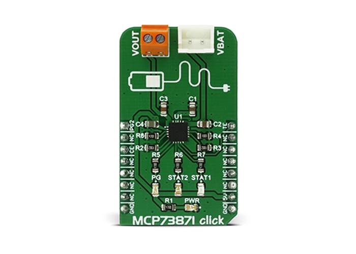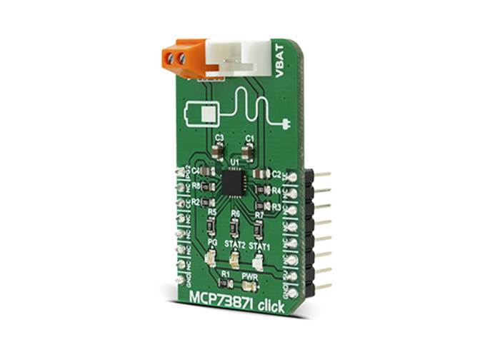 MCP73871 Click is a fully integrated solution for system power delivery and Li-Po/Li-Ion battery charge management. The Click features many Li-Po/Li-Ion battery charging optimizations, used to maximize the battery life.