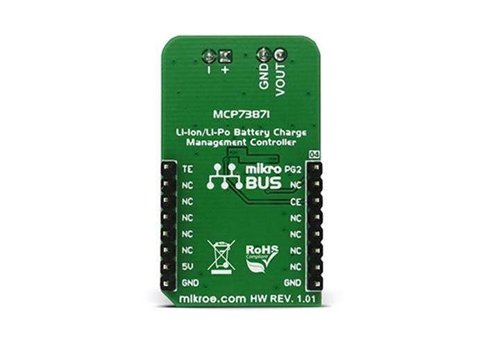 MCP73871 Click is a fully integrated solution for system power delivery and Li-Po/Li-Ion battery charge management. The Click features many Li-Po/Li-Ion battery charging optimizations, used to maximize the battery life. Some of the MCP73871 Click features include constant current and voltage charging algorithms, overvoltage protection, automatic end of charge control, automatic recharge feature, preconditioning for depleted cells and thermal management.