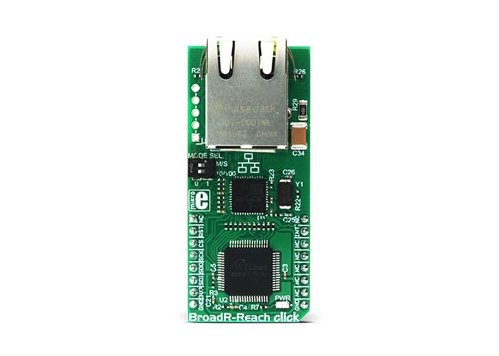 BroadR-Reach Click brings the industry grade communication standard to the mikroBUS™, which is built to be used in an Ethernet-based open network.