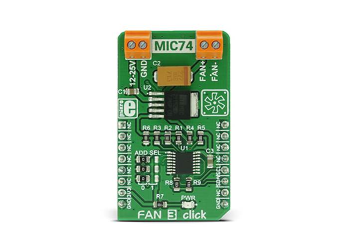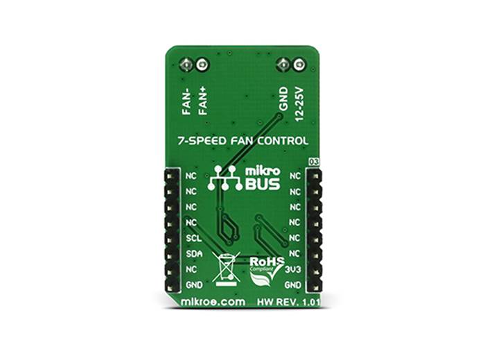 Fan 3 Click is the perfect choice for fan speed control and it can operate in seven discrete speed steps.