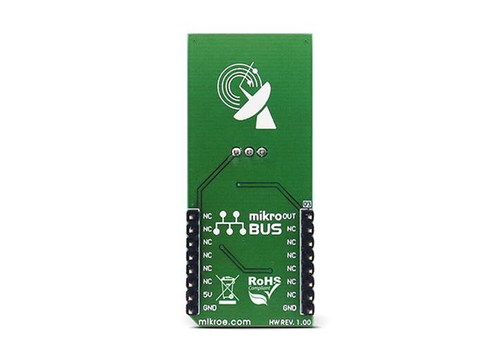 Once amplified, the signal is routed to the Analogue pin (OUT) on the mikroBUS™ line. The proximity of the object can be determined by measuring the amplitude of this signal, and speed/direction by determining its frequency.