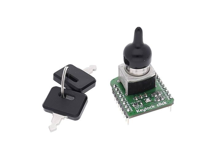 The Click board™ comes with two keys and a protective cap for the mechanism.