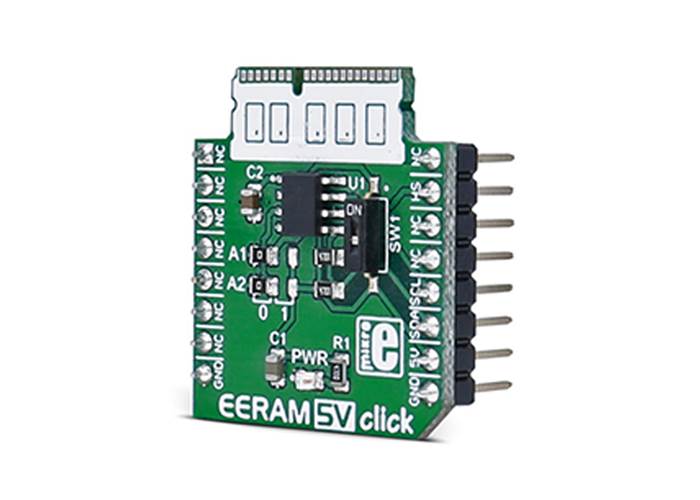 EERAM 5V Click is a static RAM (SRAM) memory Click board™ with the unique feature - it has a backup non-volatile memory array, used to store the data from the SRAM array.
