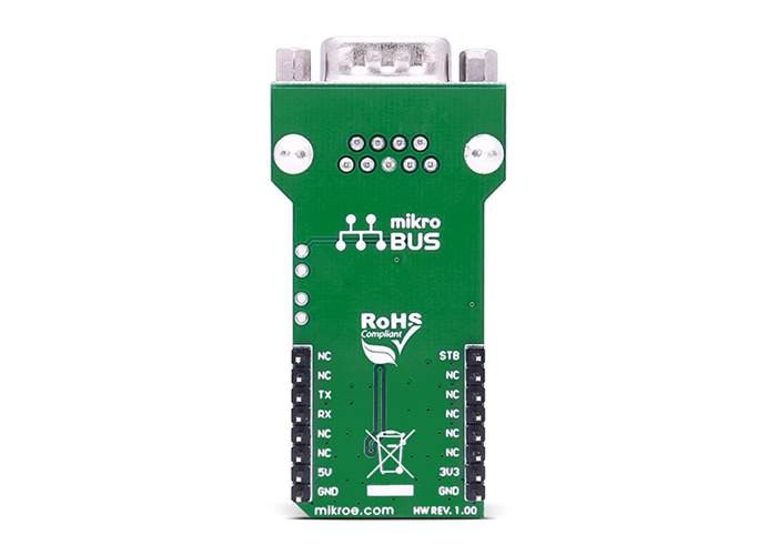 It communicates with the target microcontroller over UART interface, with additional functionality provided by the AN pin on the mikroBUS™ line.