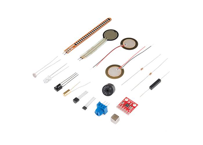 SparkFun essential sensor kit includes a range of sensors to start playing with including an accelerometer, photocell, temperature, infrared LED and sensor, force sensor and more. Experiment with electronics and create IOT devices that monitor the world.
