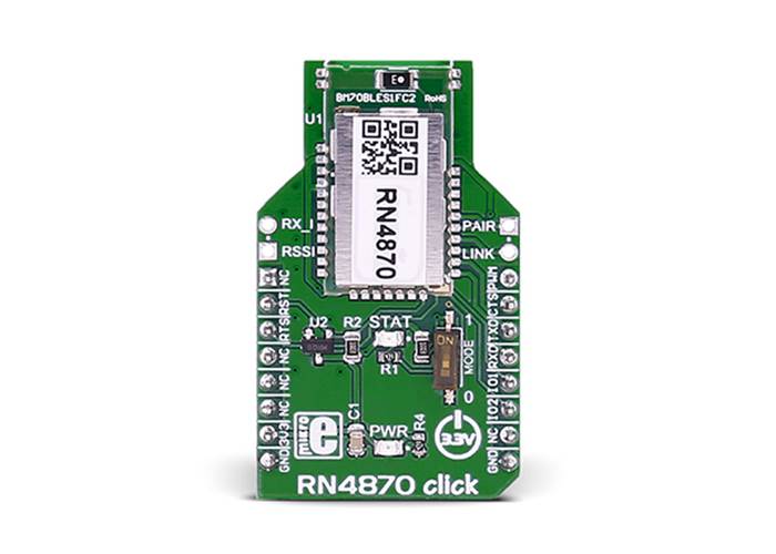 RN4870 Click carries the RN4870 Bluetooth® 4.2 low energy module from Microchip. The Click is designed to run on a 3.3V power supply.