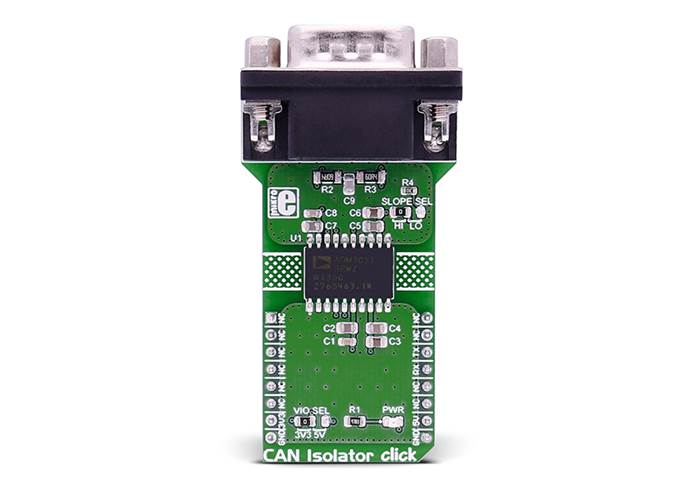 CAN Isolator Click provides isolated CAN communication. It carries the ADM3053 signal and power isolated CAN transceiver with an integrated isolated DC-to-DC converter, from Analogue Devices. The Click is designed to run on either 3.3V or 5V power supply.