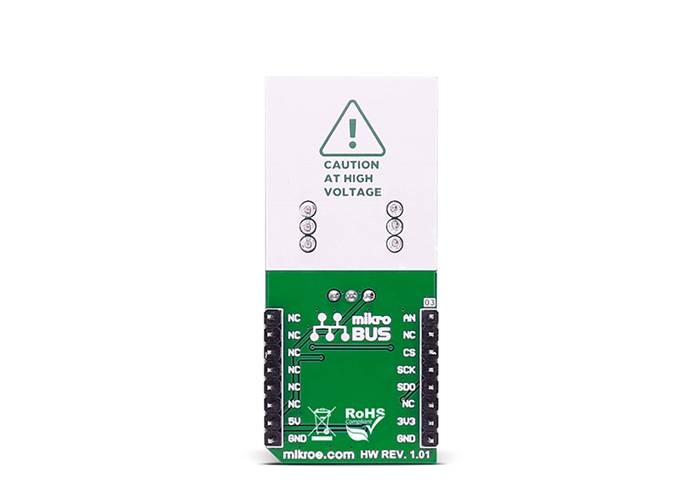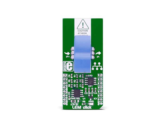 Note: LEM Click has exposed pins/pads. To stay safe take precaution when applying high voltage to the Click. The Click is to be used by trained personnel only when applying high voltage.