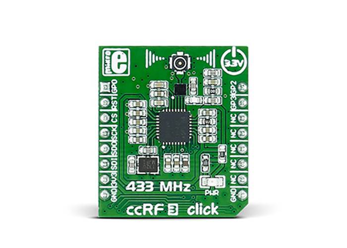 ccRF 3 Click carries the CC1120 high-performance RF transceiver for narrowband systems from Texas Instruments. The Clicks will enable you to add a low-power consumption radio transceiver at 433 MHz frequency. ccRF 3 Click is designed to run on a 3.3V power supply.