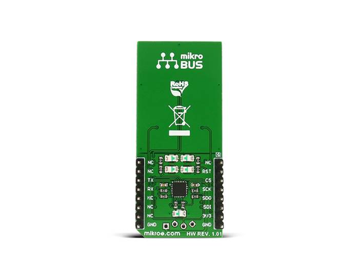 Note: The header onboard the TouchKey 2 Click can be used for device programming. Current firmware sends data packets via UART (on which the demo example in our library is based). SPI communication is possible with firmware modifications.