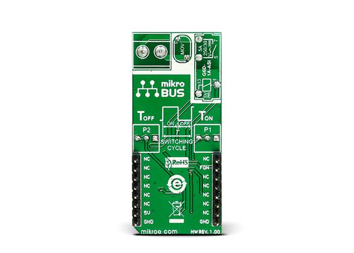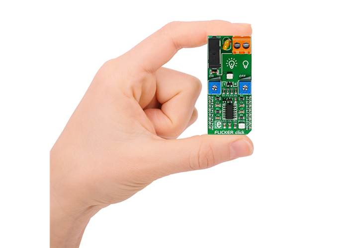 Thanks to the onboard NE556DR dual precision timer from Texas Instruments and the G6D-ASI power PCB relay from Omron, the FLICKER Click can control loads up to 5A, 250 VAC/30 VDC at a predefined time interval.