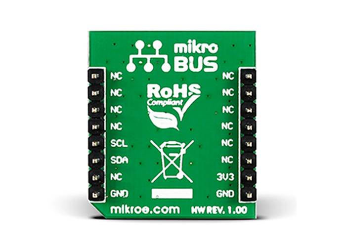 The board communicates with the target MCU through the mikroBUS™ I2C interface. Designed to use a 3.3 power supply only.