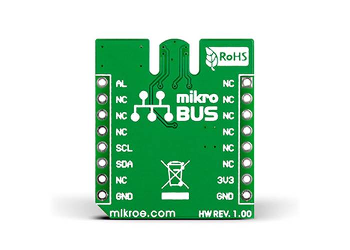 Thermo 3 Click carries TMP102, a digital temperature sensor IC with a tiny footprint of only 1.6mm x 1.6mm. The Click is designed to run on a 3.3V power supply only. It communicates with the target MCU through mikroBUS™ I2C pins (SCL, SDA), and an additional Alert pint (INT on the default mikroBUS™ configuration).
