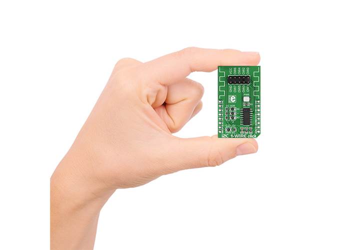 I2C 1-Wire Click carries DS2482-800, a “bridge device” that performs bidirectional conversions between I2C controller and 1-Wire peripheral devices. These can be EEPROM chips, temperature sensors and similar devices that have momentary high source current modes.