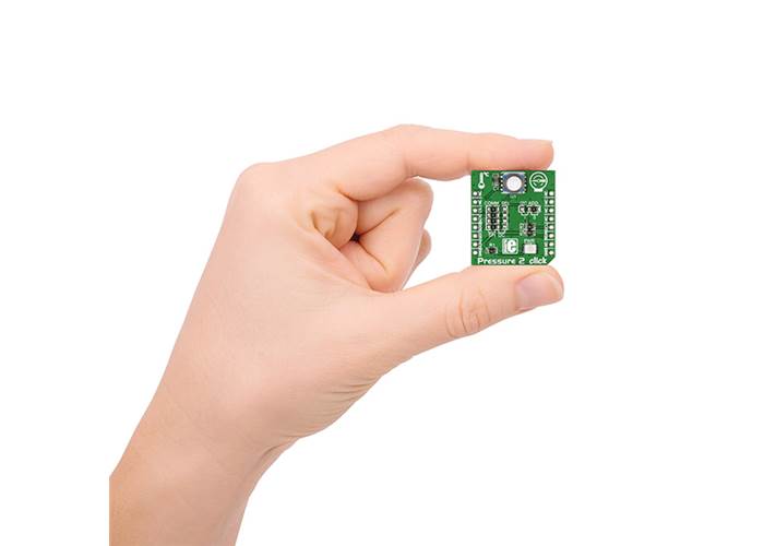 Pressure 2 Click carries MS5803, a high resolution MEMS pressure sensor that is both precise and robust. Its measurement range is from 0 to 14 bars (with a resolution of up to 0.2 mbars), but because of the stainless steel cap enclosure, the sensor can withstand up to 30 bars of pressure.