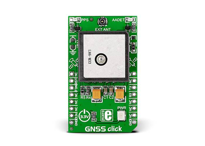 GNSS Click carries Quectel’s L86 GNSS module with a patch antenna along with an external antenna connector. GNSS stands for Global Navigation Satellite System, an umbrella term that describes both the United States GPS and the Russian GLONASS global positioning systems.