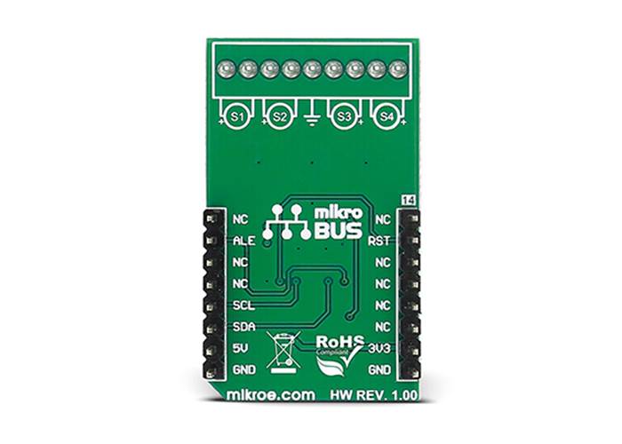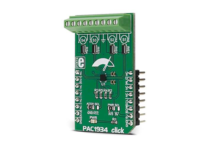PAC1934 Click carries the PAC1934 four channel DC power/energy monitor from Microchip. The Click is designed to run on either 3.3V or 5V power supply. It communicates with the target microcontroller over an I2C interface.