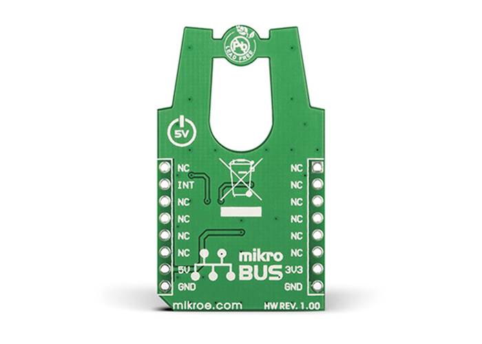 UNI HALL Click is a simple solution for adding an unipolar Hall switch to your design. It carries the Melexis US5881 unipolar Hall-effect switch and a 74LVC1T45 single bit, dual supply translating transceiver. The unipolar Hall effect sensor on UNI HALL Click is sensitive to north pole magnetic fields—when exposed to such a field, it outputs a LOW logic level. Otherwise the output is a HIGH logic level. It can be employed in a wide variety of scenarios—anywhere where a magnet can be used to infer speed, position, or other properties of the target object. UNI HALL Click communicates with the target board through the mikroBUS INT line. It's designed to use either a 3.3V or a 5V power supply.
