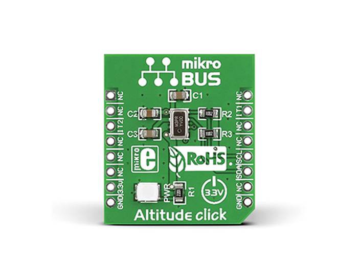Altitude Click features a MEMS pressure sensor MPL3115A2, which provides accurate pressure/altitude (20-bit) and temperature (12-bit) data. Resolution is down to 30 cm (1.5 Pa). The MPL3115A2 contains automatic internal data processing with data acquisition and compensation.