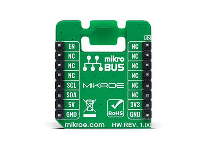 This Click board™ can operate with both 3.3V and 5V logic voltage levels selected via the VCC SEL jumper. This way, it is allowed for both 3.3V and 5V capable MCUs to use the I2C communication lines properly. However, the Click board™ comes equipped with a library containing easy-to-use functions and an example code that can be used, as a reference, for further development.