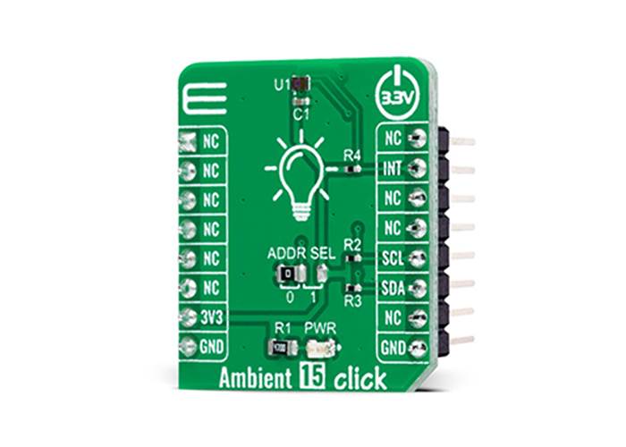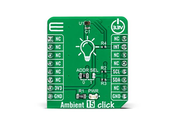 Ambient 15 Click is a compact add-on board used to measure the amount of the present ambient light. This board features the TSL2584TSV, a very-high sensitivity light-to-digital converter with an I2C interface that transforms light intensity into a digital output signal from AMS-AG.
