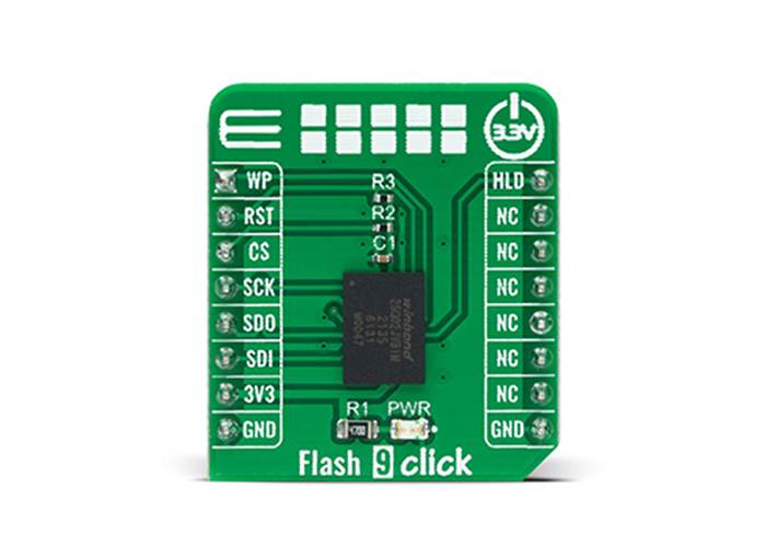 Flash 9 Click is a compact add-on board that contains a highly reliable memory solution. This board features the W25Q02JV, an SPI configurable serial Flash memory solution from Winbond Electronics. It represents a four 512Mb stack die supporting linear addressing for the full 2Gb memory address range, offering flexibility and performance well beyond ordinary Serial Flash devices. The W25Q02JV array is organised into 1,048,576 programmable pages of 256-bytes each, where up to 256 bytes can be programmed at a time. This memory also has advanced security features, can withstand many write cycles (minimum 100k), and has a data retention period greater than 20 years. This Click board™ provides a storage solution for limited space and power systems in various embedded applications.