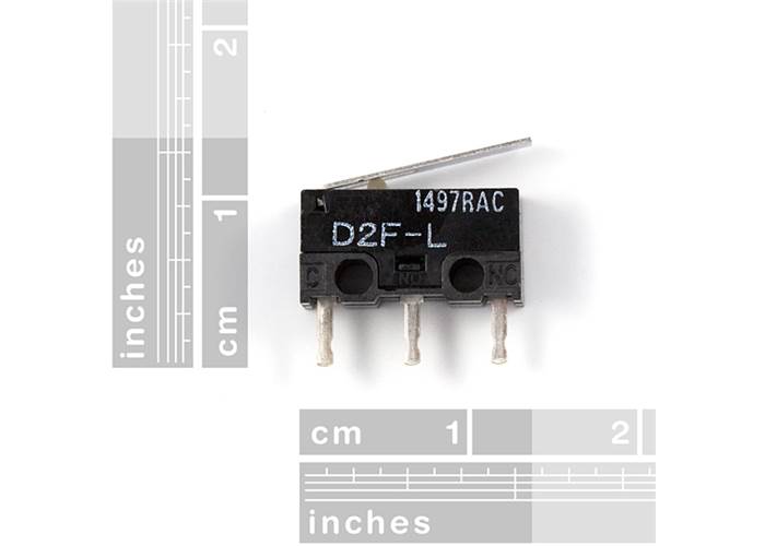 Whisker Switches - Very sensitive lever switches. Great for detecting objects such as other sumo bots, walls, balls, etc. Simple to wire and attach to external ‘bumper’ bars. Datasheet: Omron Snap Action Switch - D2F.Pdf