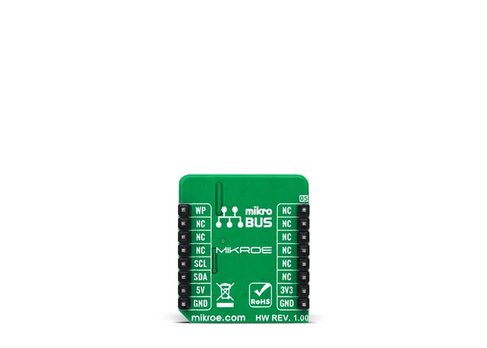 On the other side, the configurable Write Protection function, labelled as WP routed to the PWM pin of the mikroBUS™ socket, allows the user to freeze the entire memory area, thus protecting it from Write instructions.