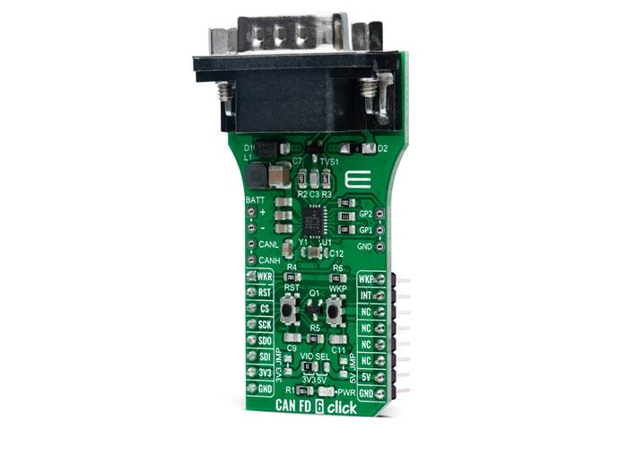 This Click board™ comes equipped with the industry-standard DB-9 connector, making interfacing with the CAN bus simple and easy. Besides, the user can connect the CAN signals directly through the CAN External header located on the board's left edge.