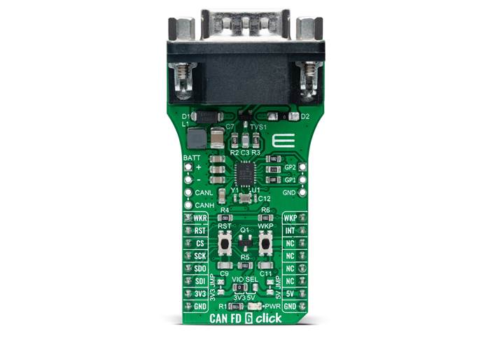 CAN FD 6 Click is a compact add-on board containing a CAN transceiver that supports a Controller Area Network (CAN) and Controller Area Network Flexible Data-Rate (CAN FD) protocols.