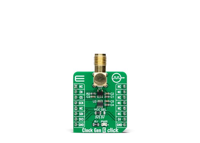 Clock Gen 6 Click is a compact add-on board representing a digital oscillator solution. This board features the MIC1557, an IttyBitty CMOS RC oscillator designed to provide rail-to-rail pulses for precise time delay or frequency generation from Microchip Technology. The MIC1557 has a single threshold and trigger connection, internally connected, for astable (oscillator) operation only. It also has an enable/reset control signal routed to the RST pin of the mikroBUS™ socket, which controls the bias supply to the oscillator’s internal circuitry and optimizes power consumption used for oscillator power ON/OFF purposes. In addition, it provides the ability to select the desired frequency programmed via a digital potentiometer, the MAX5401. This Click board™ is suitable for pulse generation, precision timer, time-delay generation, and similar applications.