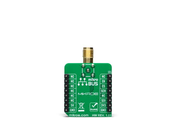 By replacing the resistor with a digital potentiometer, the user can easily program frequency output as performed on this Click board™. For this purpose, the digital potentiometer MAX5401, which communicates with the MCU via 3-Wire SPI serial interface, is used to set the resistance on the MIC1557 OUT line, adjusting the frequency up to 5MHz.
