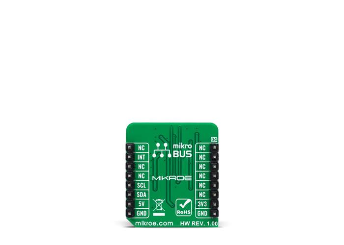 Ambient 19 Click as its foundation uses the APM-16D24-310-DF8/TR8, a digital I2C interface sensor that integrates Ambient Light Sensor (ALS), Proximity Sensor (PS), and Infrared LED (IR LED) from Everlight Electronics. The ALS can sense ambient light intensity that matches the human eye's response and enable the device to implement display dimming or lighting brightness control functions, helping to reduce power consumption. On the other side, the proximity sensor use IR LED reflection function to detect "away or close" to the object triggering the device to turn ON/OFF or some other specific function.
