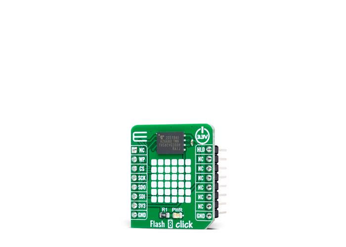 Flash 8 Click is a compact add-on board representing a highly reliable memory solution. This board features the GD5F2GQ5UEYIGR, a 2Gb high-density non-volatile memory storage solution for embedded systems from GigaDevice Semiconductor. It is based on an industry-standard NAND Flash memory core, representing an attractive alternative to SPI-NOR and standard parallel NAND Flash with advanced features. The GD5F2GQ5UEYIGR also has advanced security features (8K-Byte OTP region), software/hardware write protection, can withstand many write cycles (minimum 100k), and has a data retention period greater than ten years. This Click board™ is suitable for storage and data transfer in consumer devices, and industrial applications.