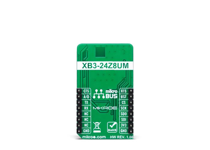 Xbee 2 Click is a compact add-on board providing wireless end-point connectivity to other devices. This board features the XB3-24Z8UM, a Digi XBee® 3 transceiver module offering a fully interoperable ecosystem covering all vertical markets from Digi International.