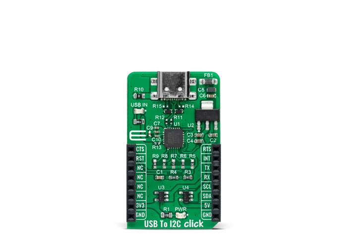 USB to I2C Click is an adaptor add-on board with a general-purpose USB controller to I2C/UART serial interface.