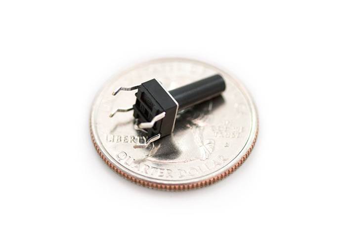 Miniature Single Pull Single Throw switches. These are high quality Omron type B3F momentary on switches. This switch has a very large 10mm tall button. Perfect as an embedded switch behind an enclosure wall. Rated up to 50mA.