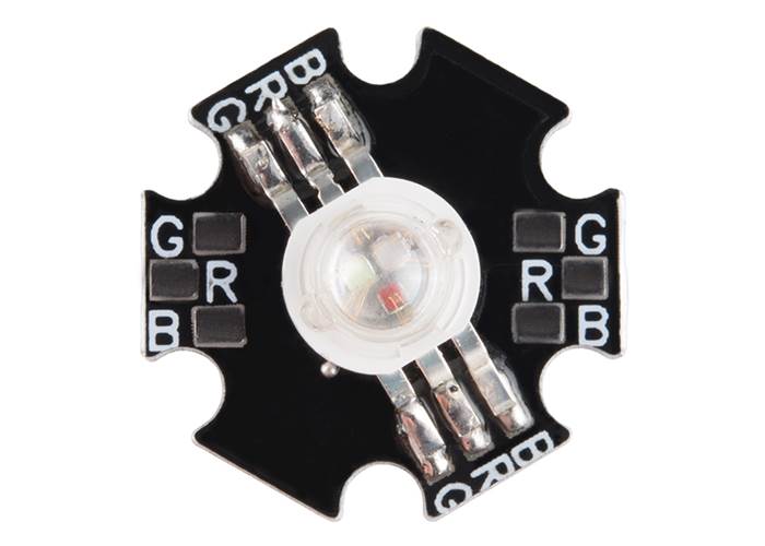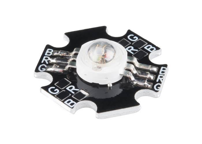 Do not look into the light. You know you want to, but boy will you be sorry. 1W per channel, RGB High Power LEDs in one aluminium backed package. These LEDs will blow you away. Light them up then put a coffee cup over the LED to keep your eyes from seeing dots in the periphery. With all three LEDs at 350mA per channel (3W total output), you will need additional heat sinking.
