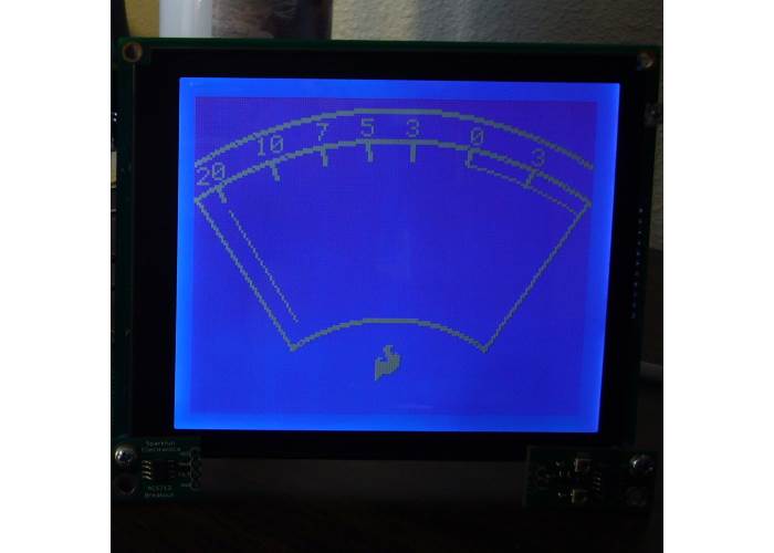 This is a big, really big 128x160 pixel graphical STN LCD. The LCD has a blue background and pixels appear white. Unit comes with an LCD backlight and built-in parallel interface controller. LCD and backlight are driven by 5V (negative voltages for contrast are generated on-board).