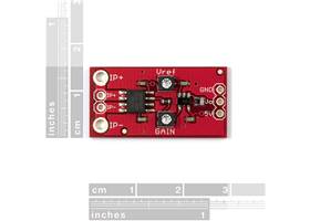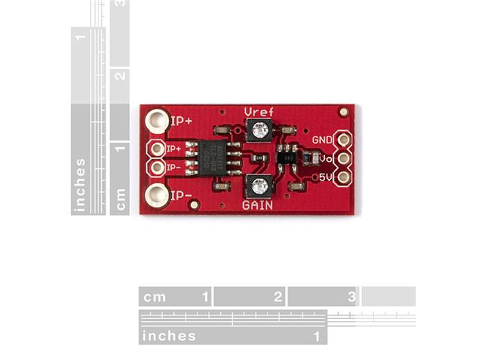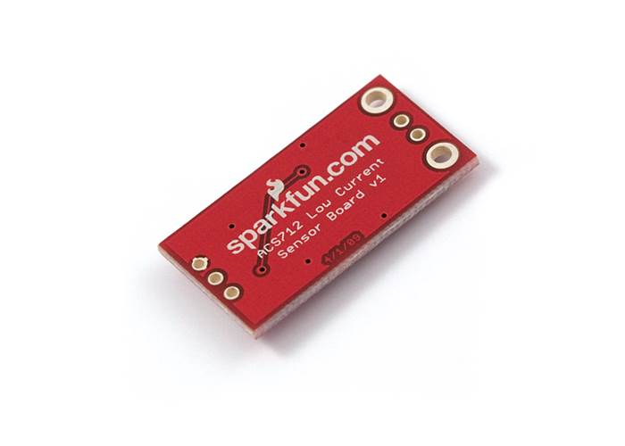 This current sensor gives precise current measurement for both AC and DC signals. These are good sensors for metering and measuring overall power consumption of systems. The ACS712 current sensor measures up to 5A of DC or AC current. We added an opamp gain stage for more sensitive current measurements. By adjusting the gain (from 4.27 to 47) you can measure very small currents.
