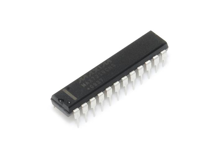 The MAX7219CNG is a compact, serial input/output common-cathode display driver that can interface microprocessors to 7-segment numeric LED displays of up to 8 digits, bar-graph displays, or 64 individual LEDs. Included on-chip are a BCD code-B decoder, multiplex scan circuitry, segment and digit drivers, and an 8x8 static RAM that stores each digit.