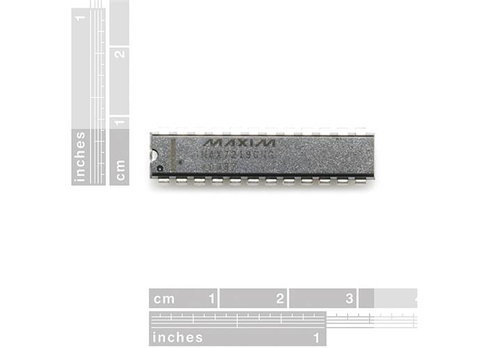 The IC also includes a 150μA low-power shutdown mode, analogue and digital brightness control, a scanlimit register that allows the user to display from 1 to 8 digits, and a test mode that forces all LEDs on.