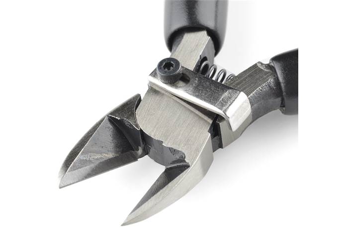 While our small diagonal cutters are great for hobby use, sometimes you need something with a little more bite. These electronic snippers are great for cutting wires and component leads. They have a cushioned handle which makes them much more comfortable to use.