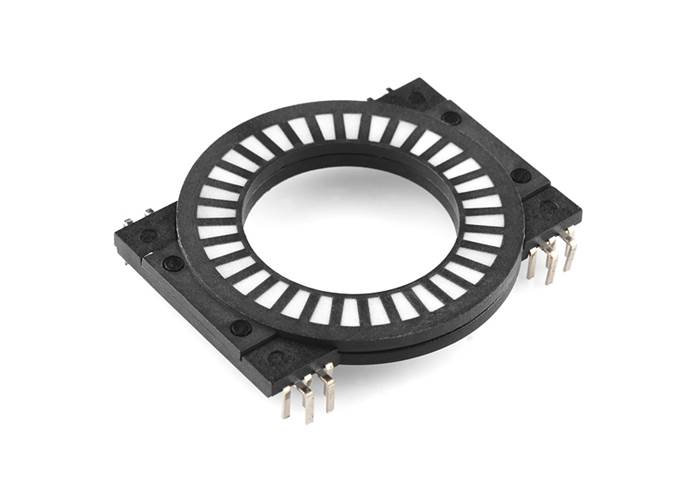 These circular LED displays are a lot of fun. Essentially, these are what you would get if you could ‘wrap’ one of our LED bargraphs around a circle. They consist of 16 red LEDs arranged so that each quarter of the circle has a common ground and four anode pins, resulting in 20 pins total on the device. Because they’re simply a bunch of cleverly packaged LEDs, they’re just as easy to use as our LED bargraphs. These are great for indicating the position of a rotary encoder!