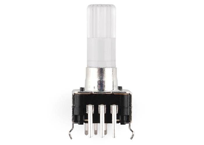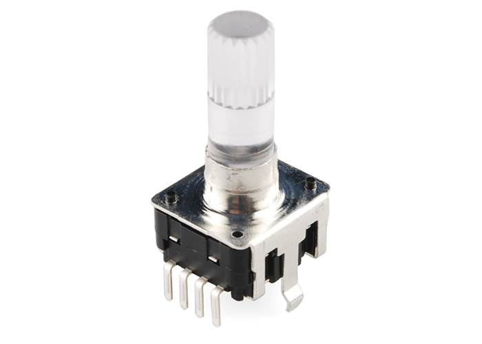 This encoder is especially cool because it has a red/green LED built in, as well as a push-button. Look below for the clear knob that goes with this potentiometer.