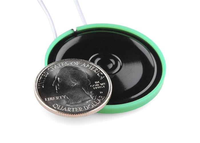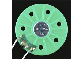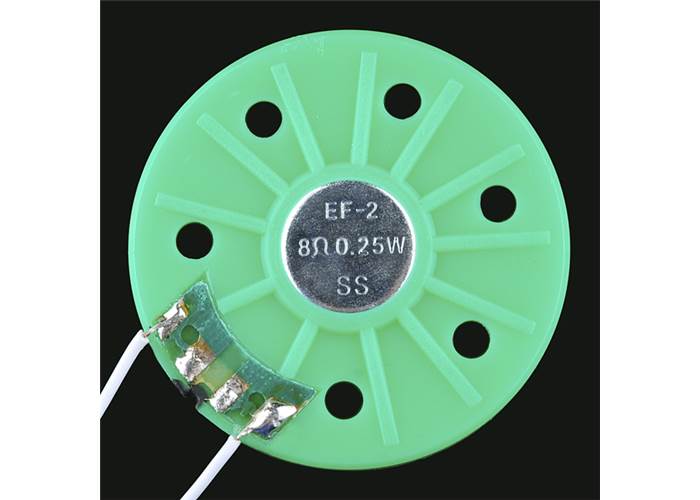 If you want to get some sound out of your project but have a tight space budget, this is a good way to do it. This 0.25W, 8Ohm speaker is only 40mm in diameter and just over 4mm thick, the same kind you might find in one of those “talking greeting cards”.