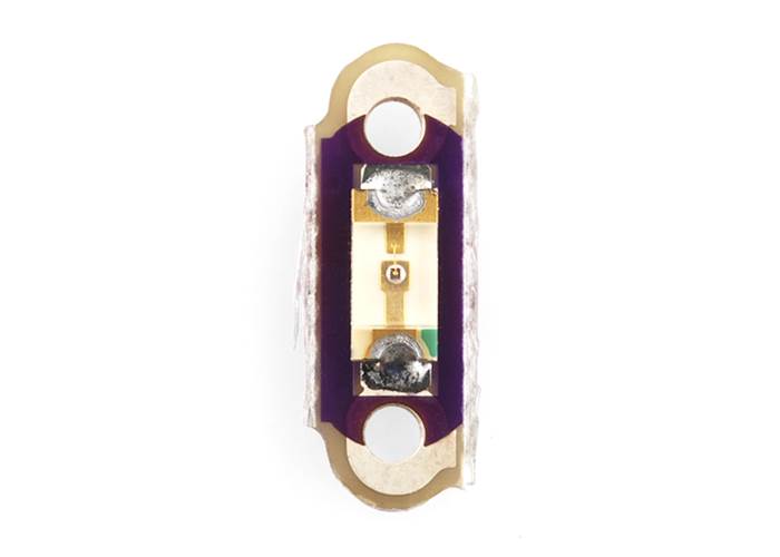 Note: Because the board don’t include a current-limiting resistor, it is possible to over-power them and possibly burn them up. The high resistance of conductive thread can help protect the Micros from high current, so long stitches can be used with most power sources to keep the power levels ‘Micro-friendly’. If you aren’t sure where to start with resistance and current, using these in conjunction with a LilyPad Simple or Main Board is a great place to start, because they both have built-in current limiting and can’t burn up your Micros.