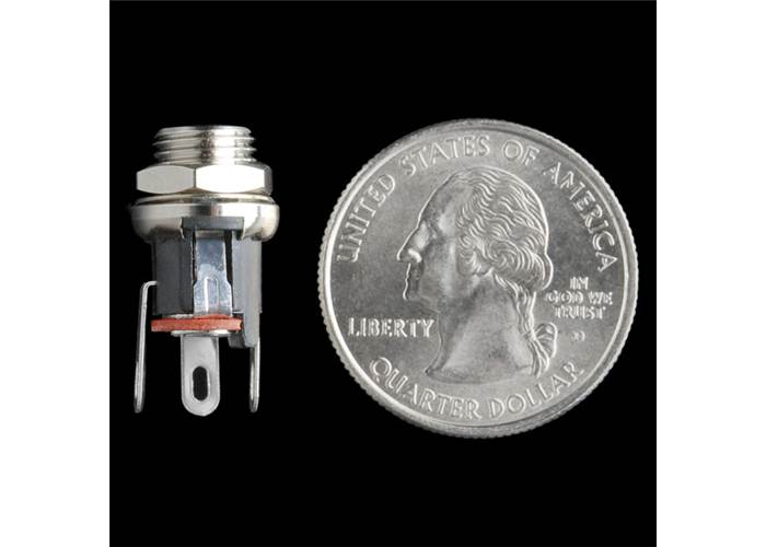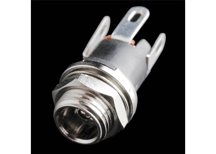 This is a great DC power jack/connector for projects in an enclosure. This is a common barrel-type power jack for DC wall supplies, in a panel-mount form factor. These are compatible with our DC wall supplies and have a 5mm jack, with a 2.1mm centre pole diameter. Simply drill the proper size hole in your enclosure, slide the jack through and secure it with a nut. Panel mount jacks are also useful in preventing mechanical stress from hanging power cables damaging your board.