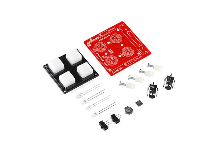 This is the latest version of the Simon SMD soldering kit, the surface mount version of our popular Simon Kit. It’s considered an intermediate kit for people who have soldered before and wish to learn how to solder surface mount components.